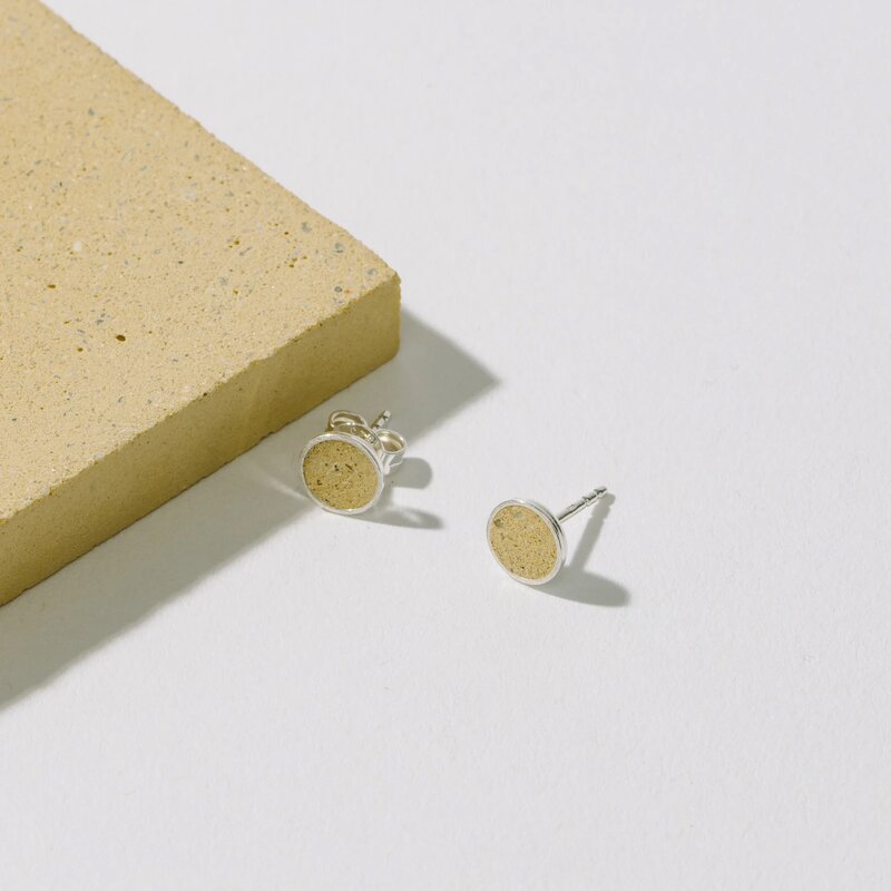 Jeder dieser einzigartigen Ohrstecker ist ein für Dich in Deutschland gefertigtes, handgegossenes Unikat aus Beton. Natürliche farbige Erden und Sande verschiedener Körnungen als besondere Zutaten für unseren Erdenbeton erzielen einzigartige und lebendige Oberflächen, die durch changierende Farben, Sprenkelungen und Lufteinschlüsse geprägt sind.