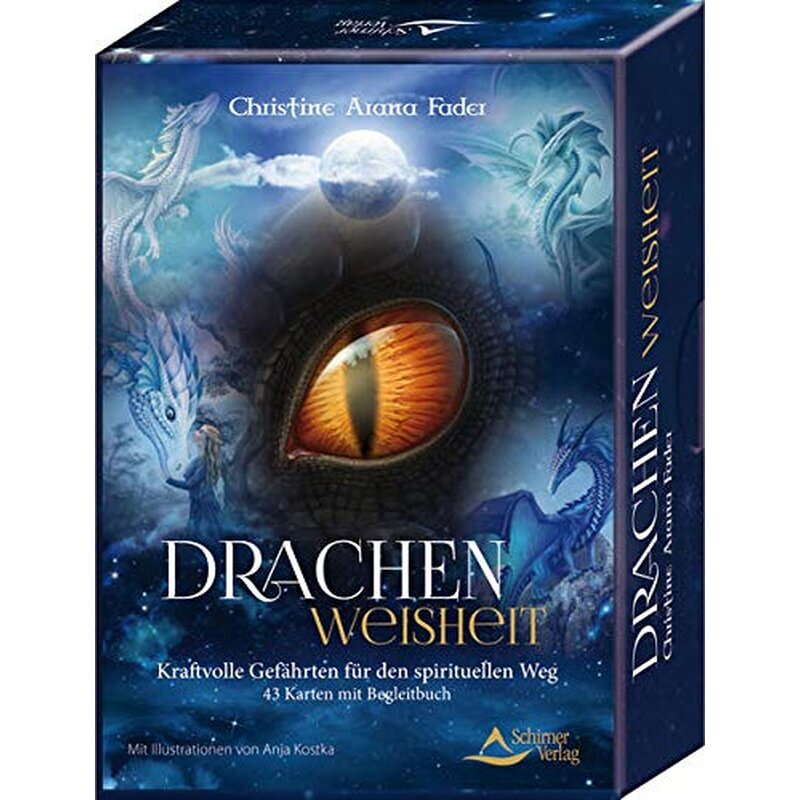Drachenweisheit ist ein Kartenset mit 43 Botschaftskarten und Begleitbuch. Die Drachen erscheinen hier als kraftvolle Gefährten, die Impulse für Liebe, Freiheit und Selbstvertrauen geben. Jede Karte trägt eine klare Botschaft, die Dich ermutigt, Deinen spirituellen Weg bewusst zu gestalten. Das Begleitbuch erläutert Hintergründe und Anwendungsmöglichkeiten und dient als Leitfaden für eine vertiefte Kartenpraxis im Alltag.
