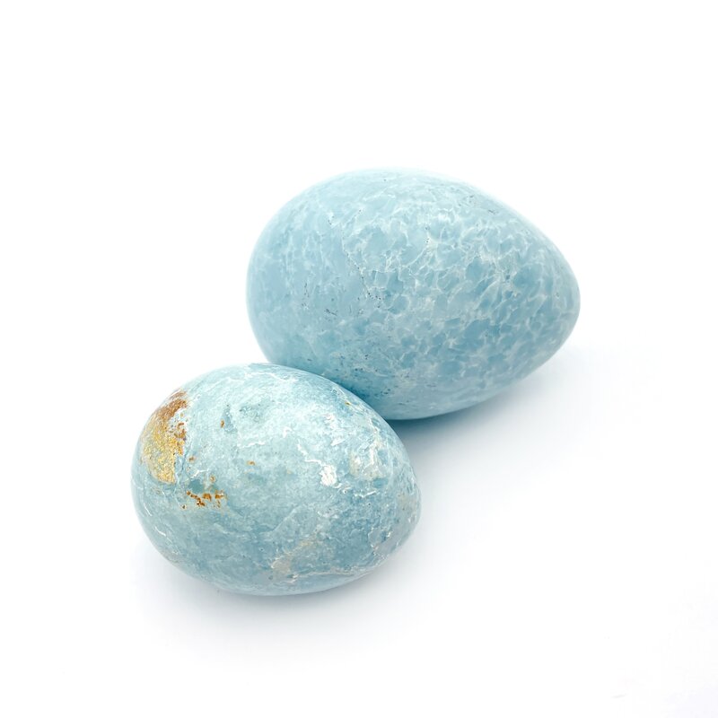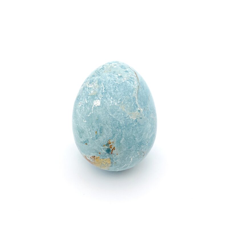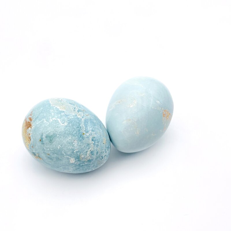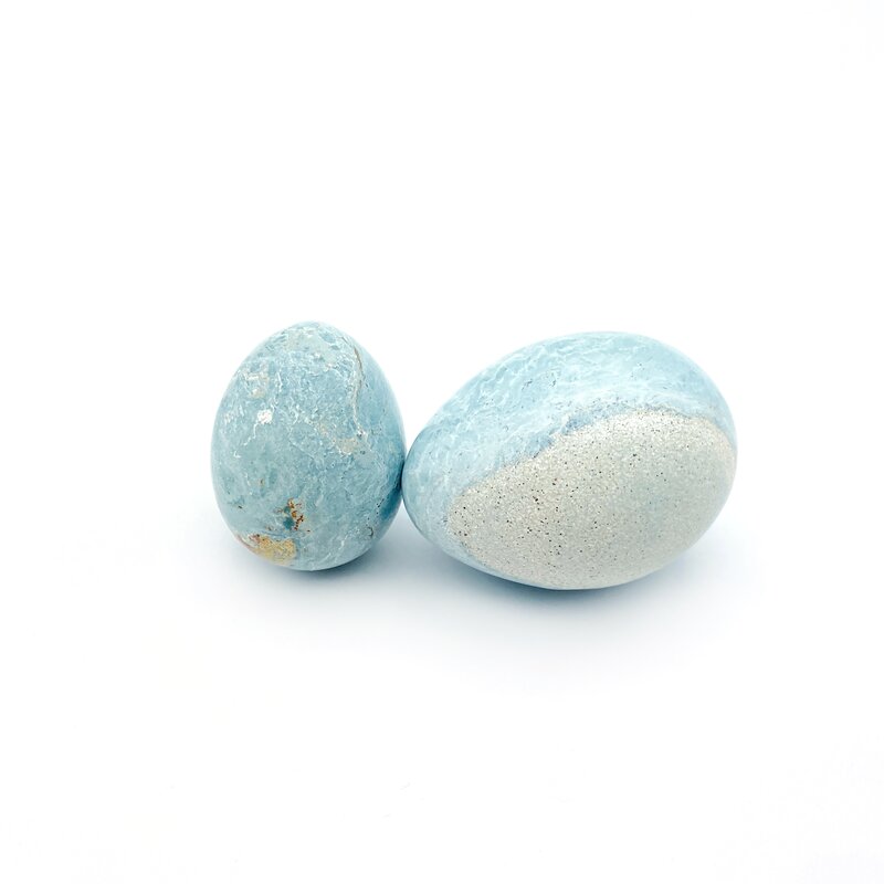 Gereinigt wird das Ei unter warmen Wasser, entlade es mit Hämatit-Mini-Steinchen und lade es in einer Amethystdruse auf.