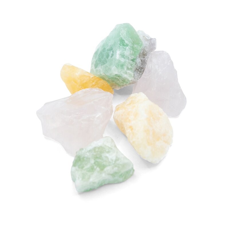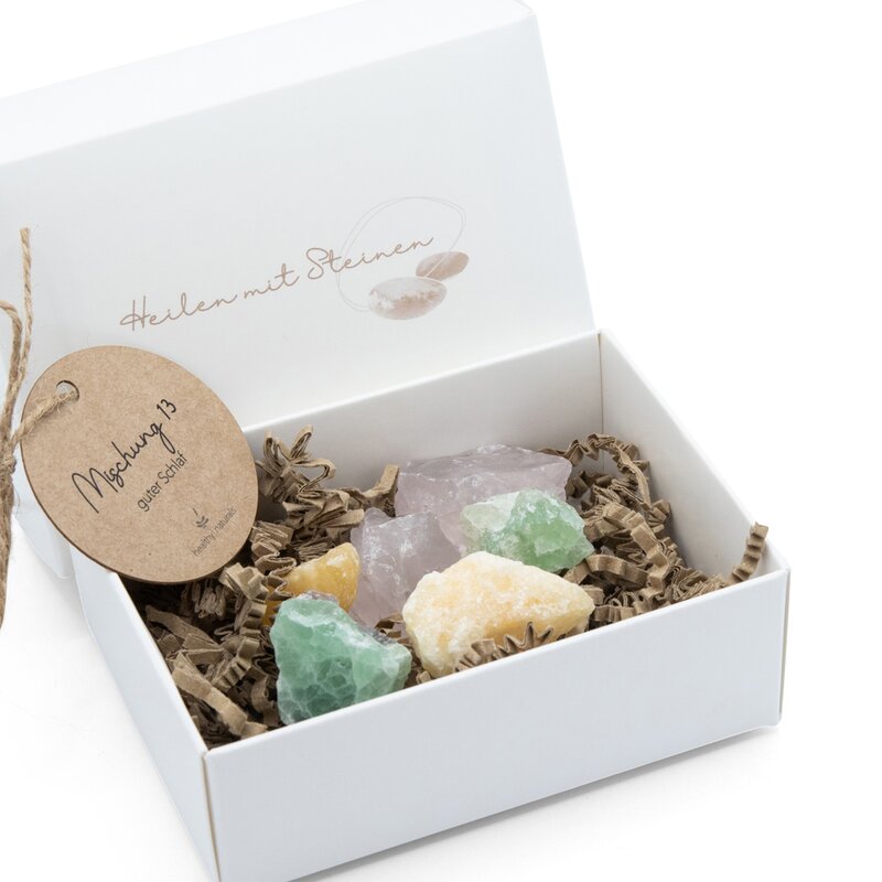 In der Nacht tanken wir Energie, umso wichtiger ist es, dass wir einen erholsamen Schlaf haben. Also zur Abwechslung lieber ein paar Steinchen im Wasser zählen, als hunderte von Schafen. Fluorit {Selbstbestimmung, Konzentration und Wachstum}, Orangencalcit {Selbstvertrauen und Entwicklung} und Rosenquarz {Herzlichkeit, Liebe und Mitgefühl} stehen dir dafür zur Verfügung.