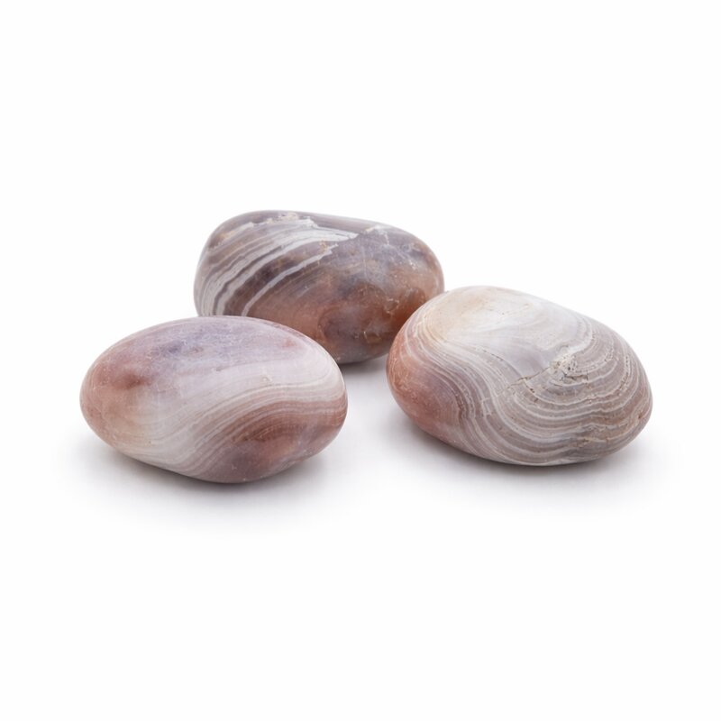 Pinkfarbener Botswana-Achat wird zugeschrieben, Ausgleich, Kreativität, Herzenswärme und eine sanfte, unterstützende Lebensenergie zu fördern.
