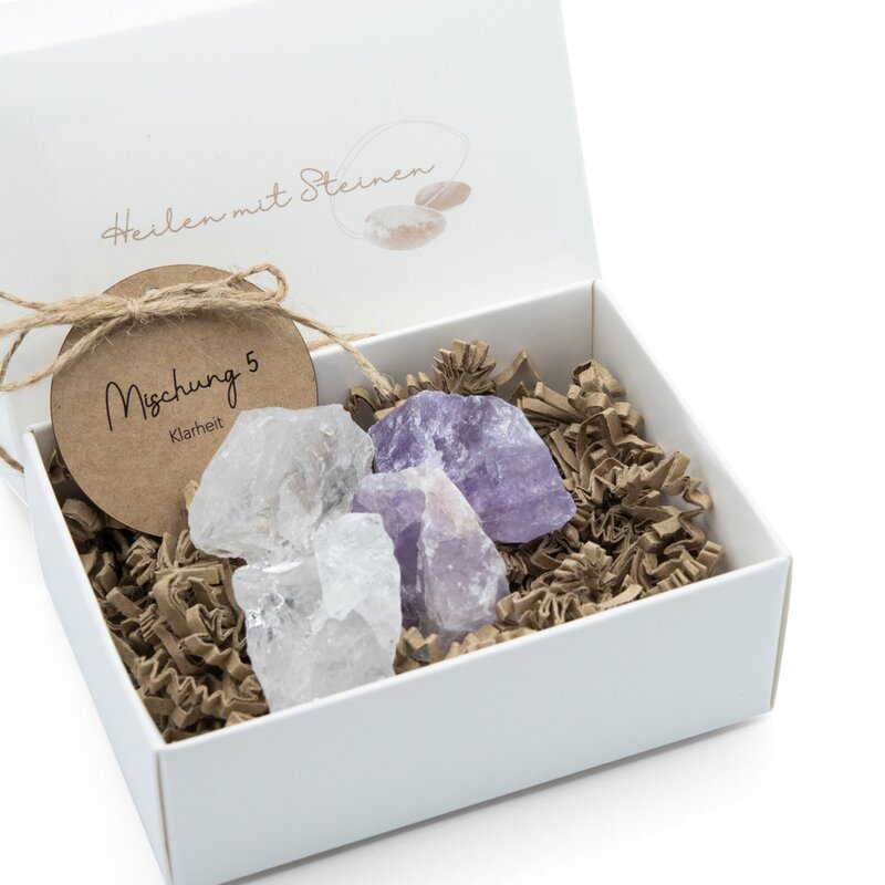 Eine Mischung aus Bergkristall {Bewusstheit und Entwicklung} und Amethyst {Wachheit}. So kann Klarheit einziehen, wo vorher ein Fragezeichen war.