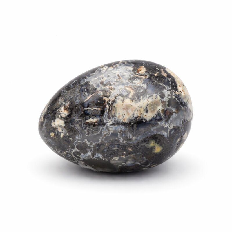 Durch die glatte Politur kommen die natürlichen Zeichnungen besonders schön zur Geltung. Als Dekorationsstück, Handschmeichler oder Sammlerstück wirkt dieses Edelstein-Ei ruhig, elegant und harmonisch.
