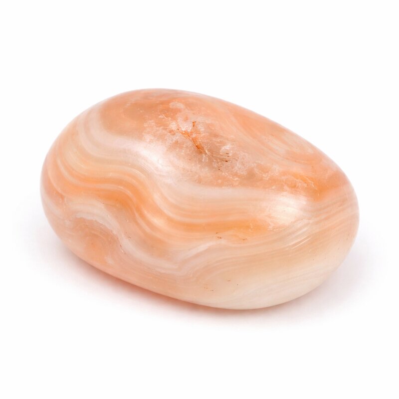 Dieser Trommelstein zeigt zarte Apricot- und Cremetöne, oft durchzogen von feinen, natürlichen Bänderungen. Die weichen Farbverläufe verleihen dem Stein eine besonders warme und ruhige Ausstrahlung, die durch die glatte Politur zusätzlich betont wird.