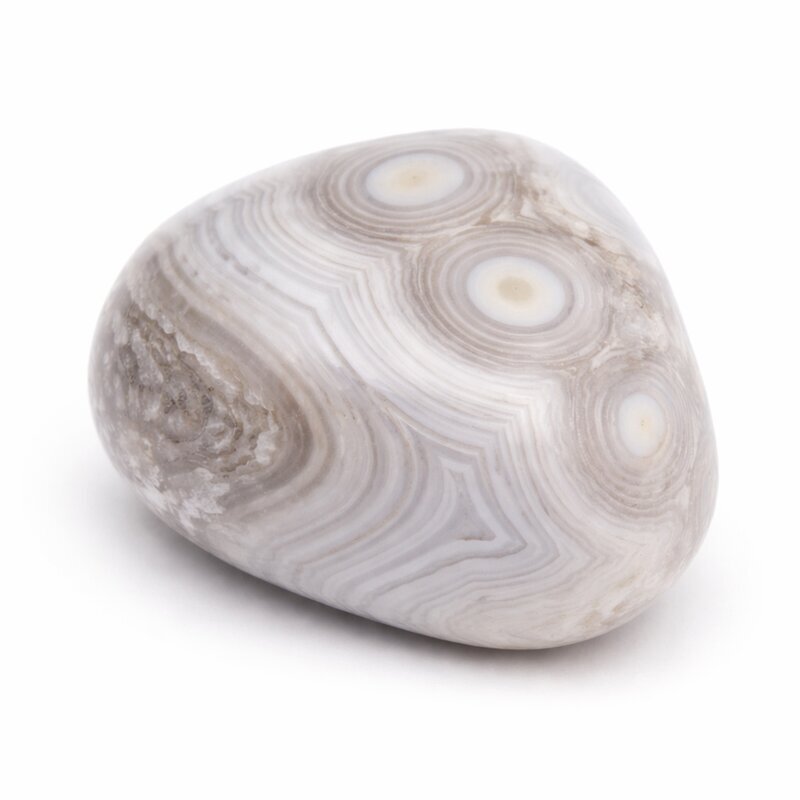 Material: Naturstein (Achat), Herkunft: Botswana. Die charakteristischen, augenförmigen Strukturen entstehen auf natürliche Weise und machen jeden Stein zu einem einzigartigen Unikat. Leichte Abweichungen in Farbe, Form und Zeichnung sind daher ganz normal.