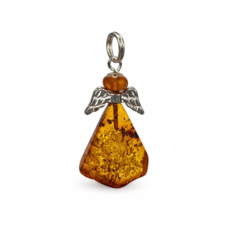 Engel Anhänger aus Bernstein mit silberfarbener Öse