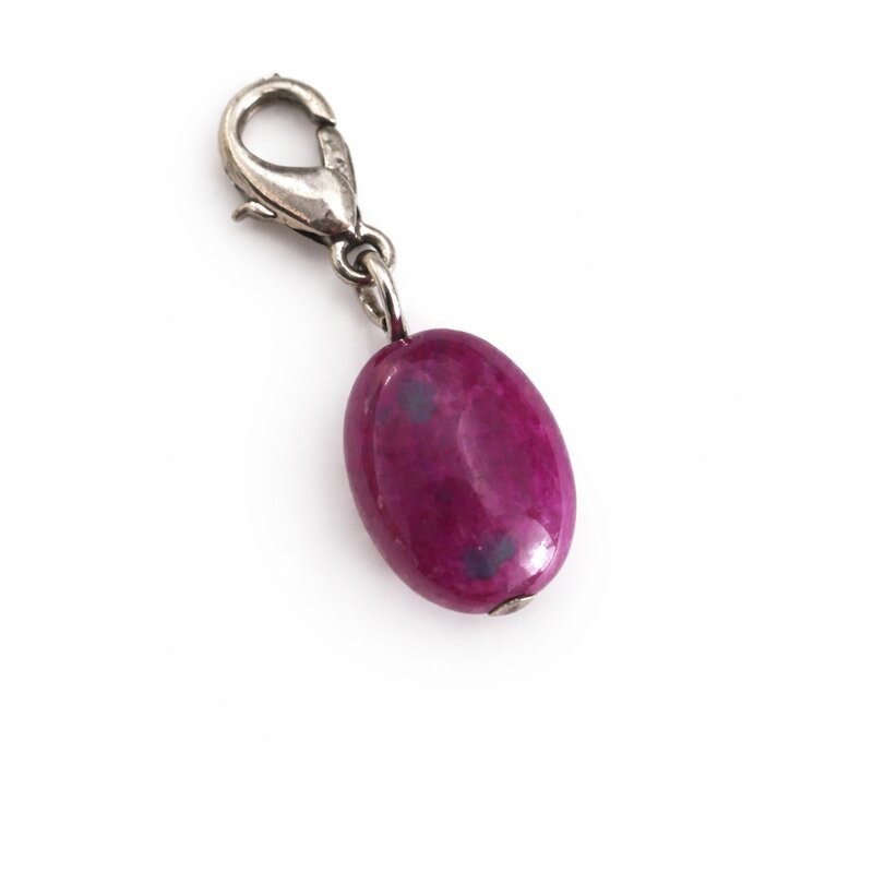 Material: Naturstein (Rubin) mit silberfarbenem Metall-Karabiner. Jeder Stein ist ein Unikat, Unterschiede in Farbe, Struktur und Intensität sind natürlich und gewollt.