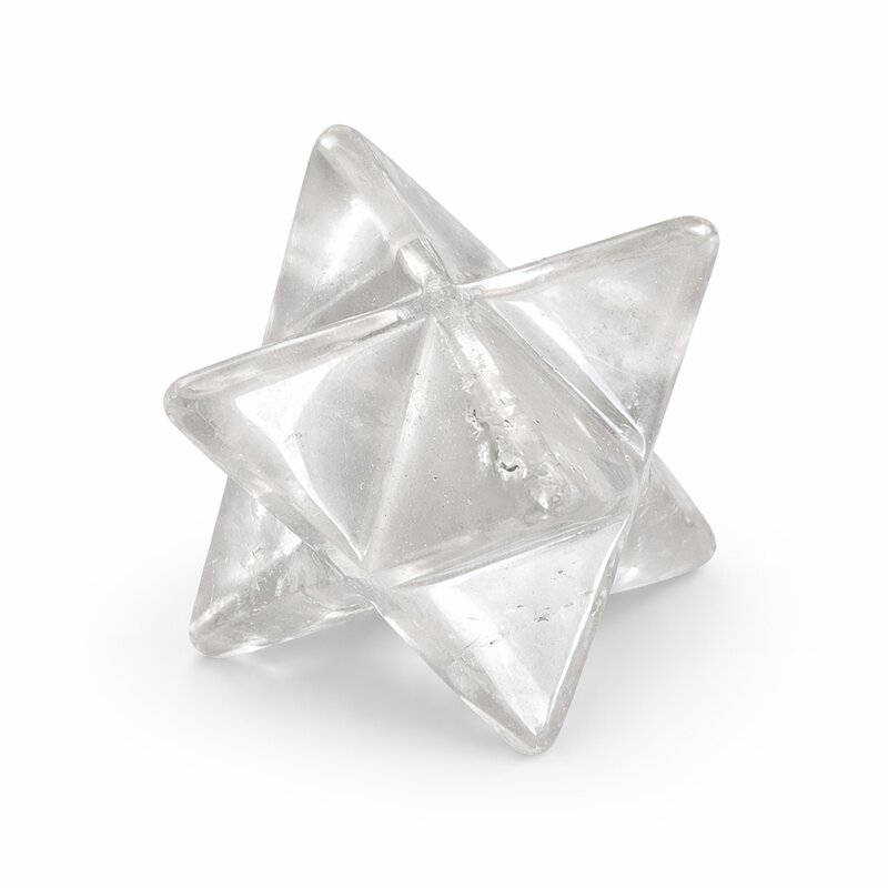 Merkaba aus Bergkristall in klar geschliffener Sternform, wahlweise ca. 30 mm oder 15–20 mm. Transparent, lichtdurchlässig und ruhig in der Ausstrahlung.