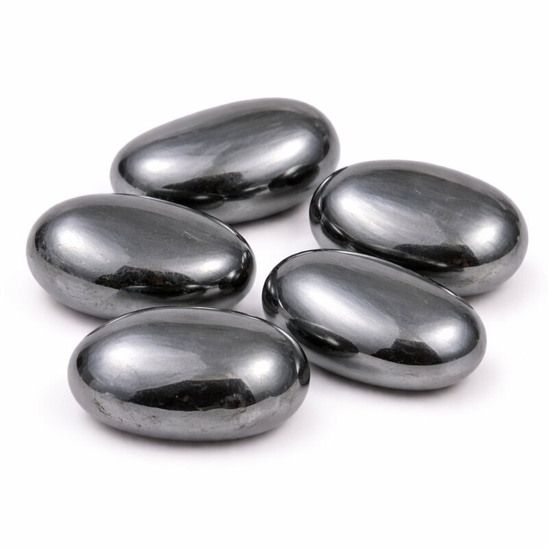 Hämatit zeigt sich in einem metallisch glänzenden Grau bis Anthrazit und wirkt durch seine glatte, spiegelnde Oberfläche besonders klar und kraftvoll. Die dichte, kühle Ausstrahlung verleiht dem Stein eine ruhige Präsenz und macht ihn zu einem zeitlosen Begleiter. Jeder Trommelstein besitzt eine individuelle Form und wirkt durch seinen natürlichen Glanz besonders edel.
