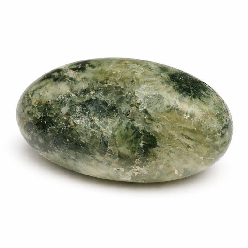 Handschmeichler Ozeanachat aus Naturstein in sanften Grün- und Erdtönen mit organischer Zeichnung, glatt geschliffen und angenehm in der Hand.