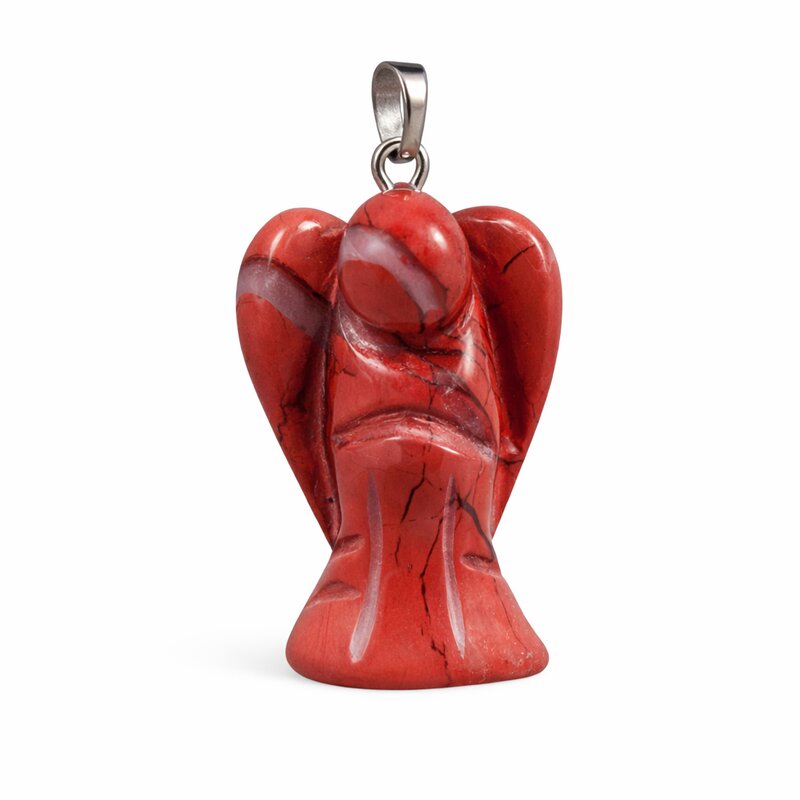 Dieser Anhänger zeigt einen fein gearbeiteten Engel aus rotem Jaspis mit warmen Rot- bis Ziegelrot-Tönen. Je nach Stein können natürliche Maserungen oder leichte Farbunterschiede sichtbar sein, die jedem Anhänger seine eigene, kraftvolle Ausstrahlung verleihen. Die kompakte Größe macht ihn zu einem angenehmen Begleiter im Alltag.