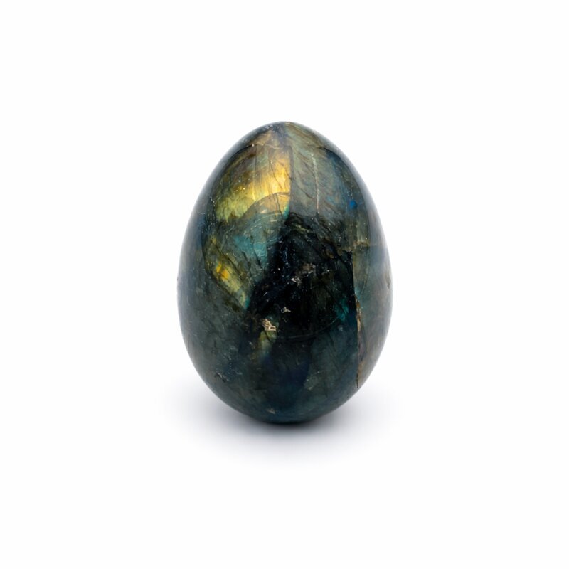 Dieses Edelstein-Ei aus Labradorit zeigt das typische Farbspiel dieses faszinierenden Minerals. Je nach Lichteinfall schimmern Blau-, Grün- und Goldtöne über die Oberfläche und verleihen jedem Stein eine geheimnisvolle Ausstrahlung.