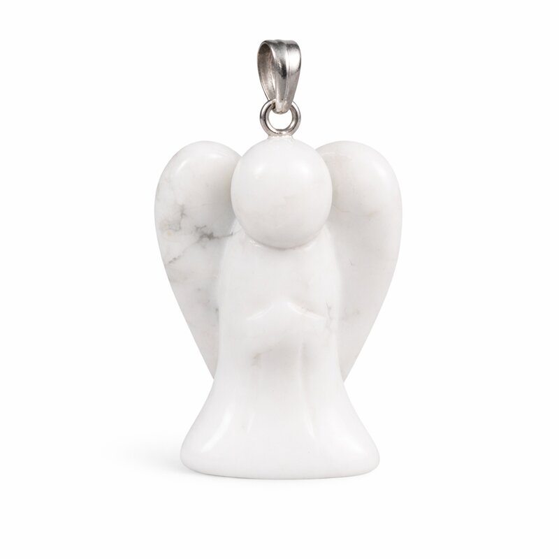 Dieser Anhänger zeigt einen fein gearbeiteten Engel aus Magnesit mit typischer weißer bis cremefarbener Grundfarbe und oft grauen bis dunkleren Maserungen. Die natürliche Zeichnung verleiht jedem Anhänger eine individuelle und ruhige Ausstrahlung. Durch die kompakte Größe ist er ein dezenter und angenehmer Begleiter im Alltag.