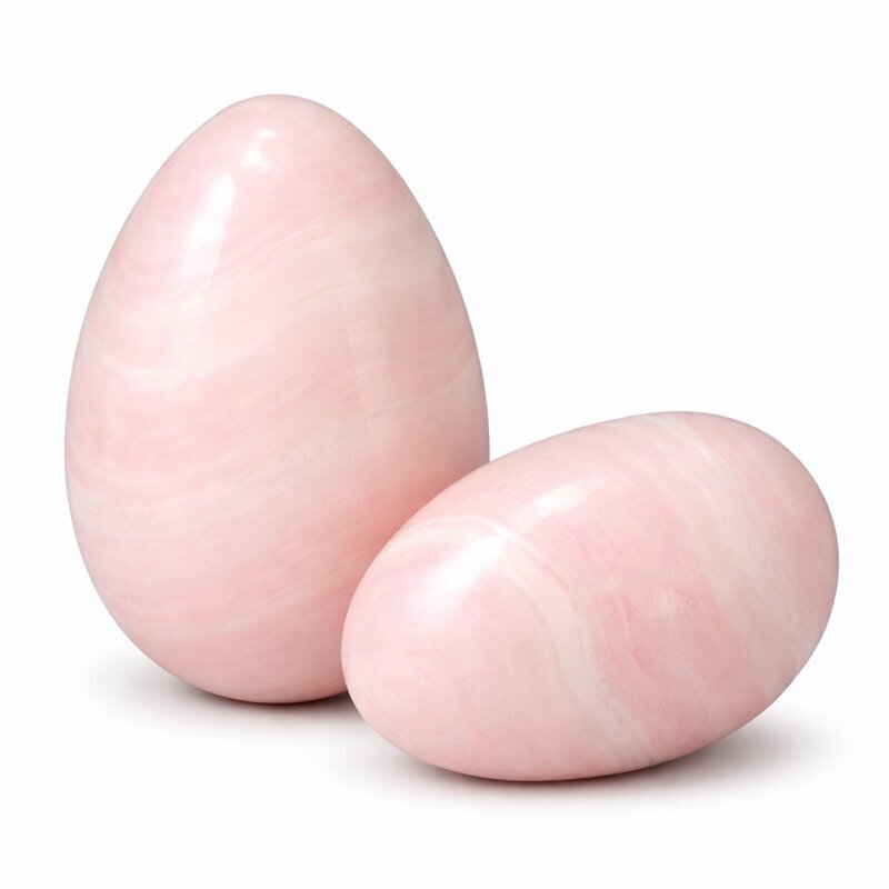 Dieses Edelstein-Ei aus Manganocalcit zeigt die typischen zarten Rosé- und Pastelltöne dieses Minerals. Die Farbpalette reicht von hellem Rosa bis zu milchigen Nuancen und verleiht jedem Stück eine besonders sanfte und beruhigende Ausstrahlung.