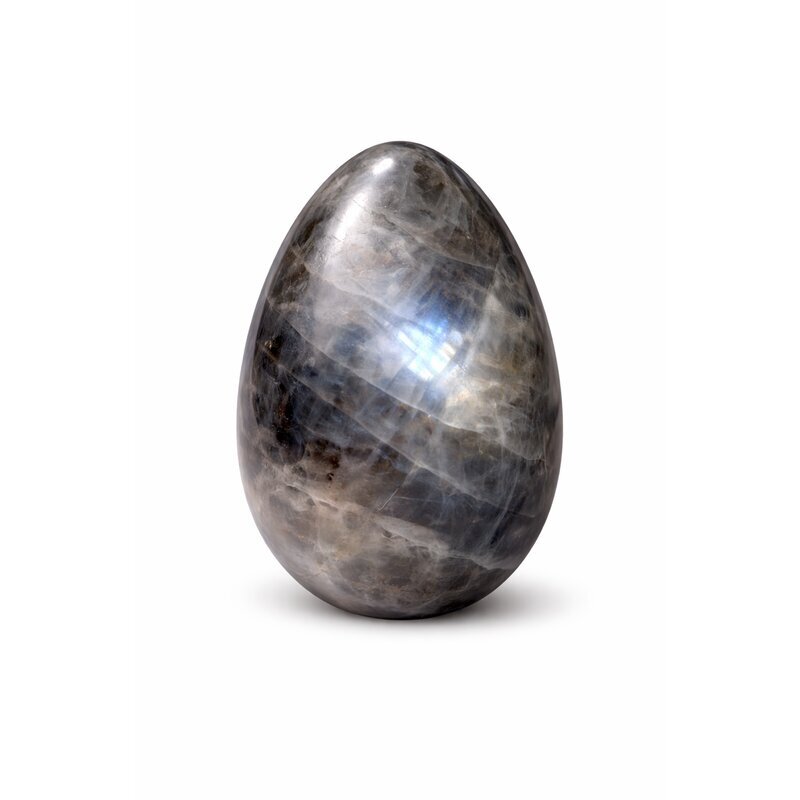 Dieses Yoni-Ei aus Mondstein zeigt die typischen hellen Naturtöne dieses Minerals. Die Farbpalette reicht von weißlich über cremefarben bis hin zu leicht schimmernden Nuancen, die je nach Lichteinfall sanft reflektieren.
