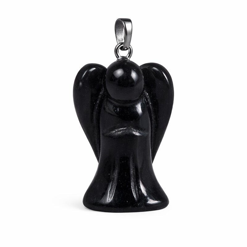 Dieser Anhänger zeigt einen fein gearbeiteten Engel aus Onyx mit tiefschwarzer, gleichmäßiger Farbgebung. Die glatte, polierte Oberfläche verleiht dem Stein eine ruhige und kraftvolle Ausstrahlung. Durch die schlichte Eleganz wirkt der Anhänger zeitlos und lässt sich vielseitig kombinieren.
