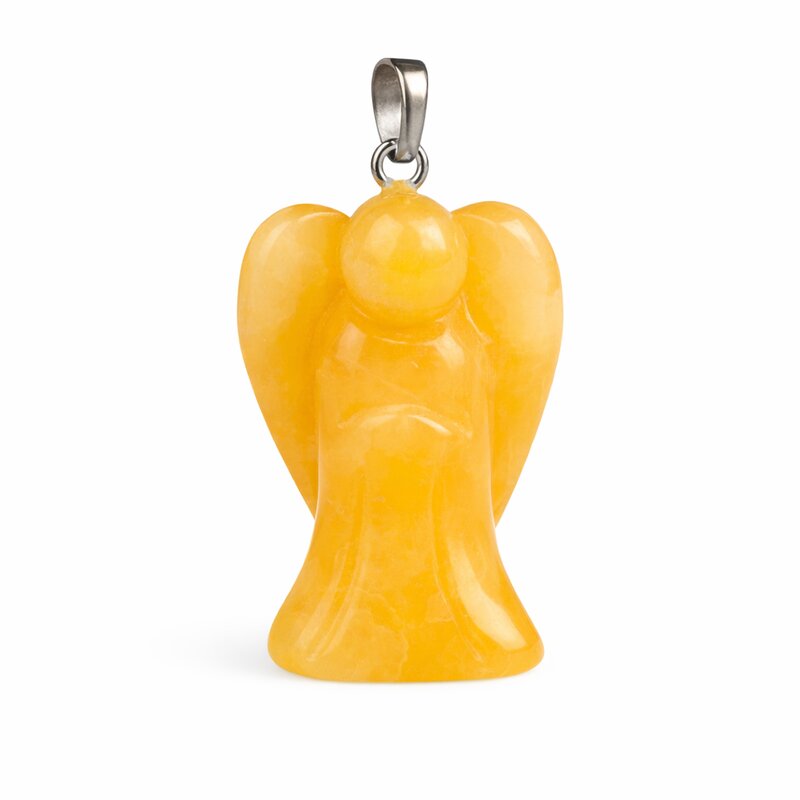 Dieser Anhänger zeigt einen fein gearbeiteten Engel aus Orangencalcit mit warmen, leuchtenden Orange- bis Apricottönen. Je nach Stein können sanfte Farbverläufe oder leichte Transparenzen sichtbar sein, die jedem Anhänger eine lebendige und freundliche Ausstrahlung verleihen. Durch die kompakte Größe ist er ein angenehmer Begleiter im Alltag.