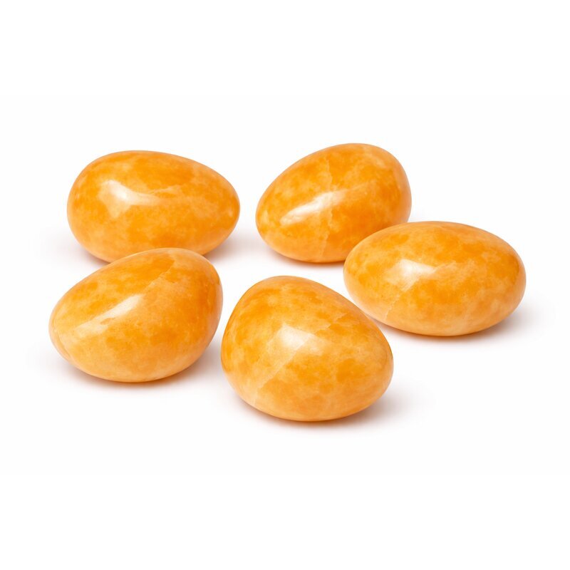 Orangencalcit zeigt sich in warmen, leuchtenden Orangetönen, die von zartem Apricot bis zu kräftigem Orange reichen können. Die Farbwirkung wirkt freundlich, lebendig und zugleich weich. Die glatte, polierte Oberfläche bringt die warme Ausstrahlung besonders schön zur Geltung und macht jeden Stein zu einem individuellen Unikat.