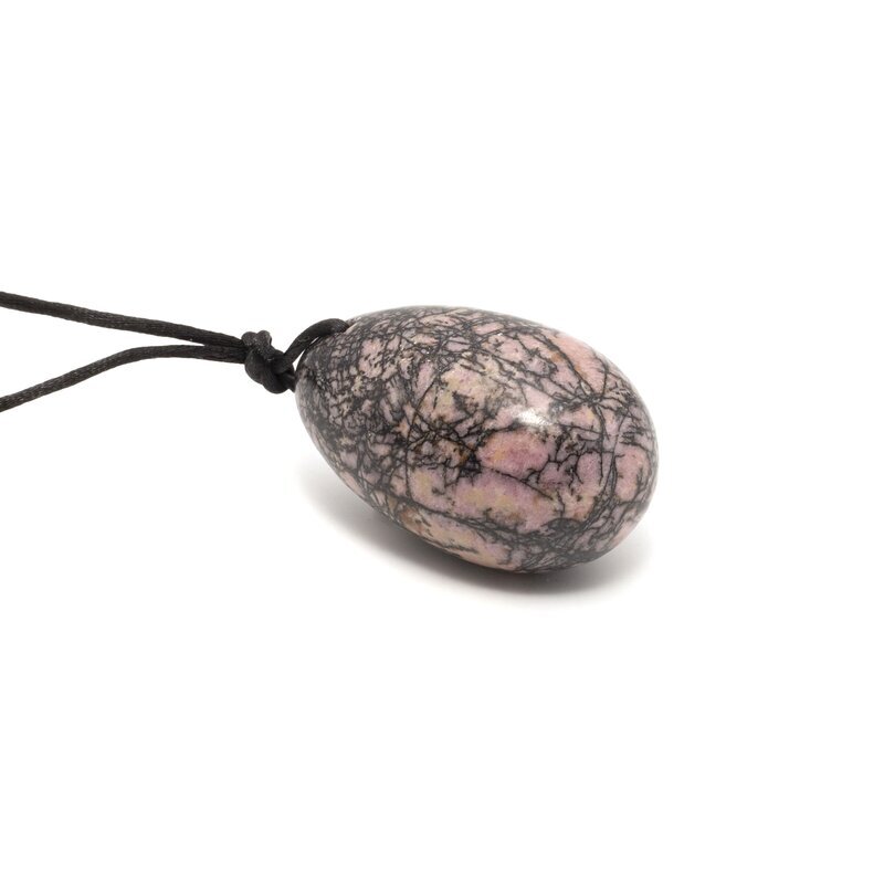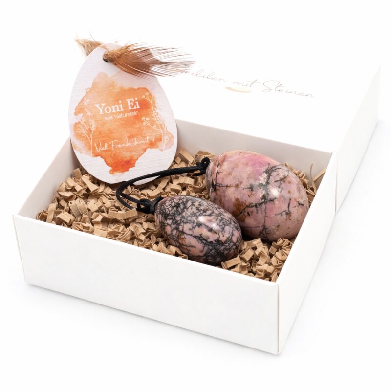 2er Set Yoni-Eier aus Rhodonit mit Rückholbändchen