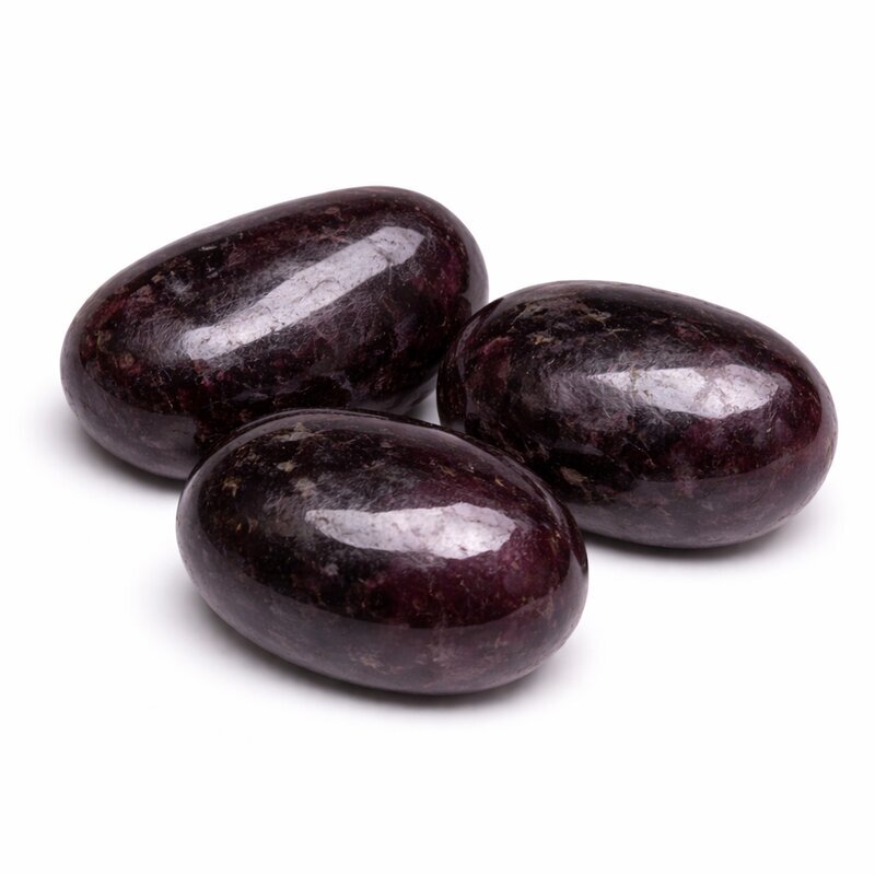 Rubin zeigt sich in intensiven Rot- bis Dunkelrottönen, oft mit natürlichen Einschlüssen oder leicht raueren Bereichen, die seine ursprüngliche Struktur erkennen lassen. Die Farbwirkung wirkt kraftvoll, lebendig und zugleich tief. Die polierte Oberfläche bringt die charakteristische Farbintensität besonders schön zur Geltung und macht jeden Stein zu einem individuellen Unikat.