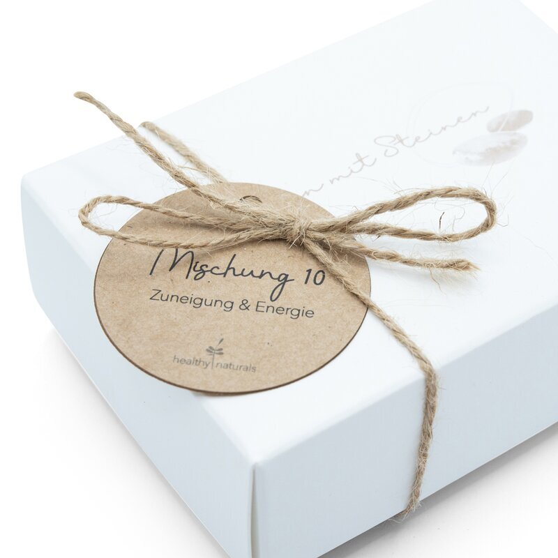 Mischung aus vier Wassersteinen zur Unterstützung von Zuneigung, innerer Harmonie und kraftvoller Energie. Geeignet für Zeiten, in denen Geben und Empfangen in ein ausgewogenes Verhältnis gebracht werden sollen.