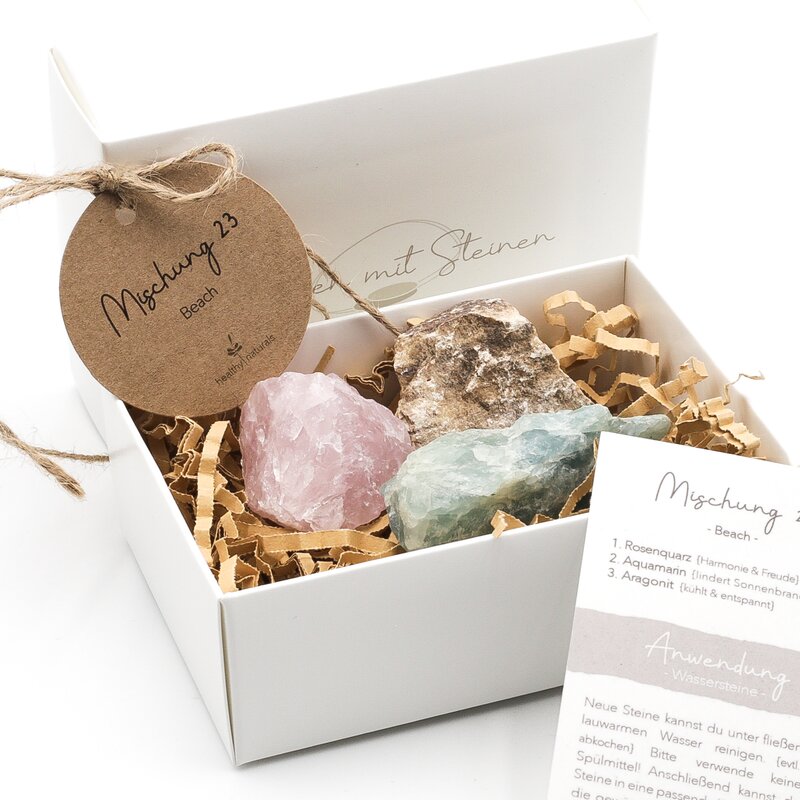 Mischung aus drei Wassersteinen zur Unterstützung von Leichtigkeit, Ausgleich und sommerlicher Gelassenheit. Geeignet für warme Tage und Zeiten, in denen Entspannung und neue Impulse im Vordergrund stehen.