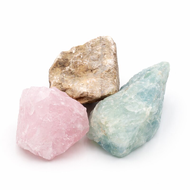 Steine: Rosenquarz, Aquamarin, Aragonit