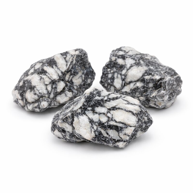 Diese Wassersteine aus Pinolith zeigen sich in hellen Grau- bis Weißtönen mit charakteristischen, blütenartigen Strukturen. Die natürlichen Muster erinnern an kleine Pinienblüten und verleihen jedem Stein eine besondere, lebendige Ausstrahlung. Die naturbelassenen Rohsteine wirken ruhig, harmonisch und zugleich stabilisierend.