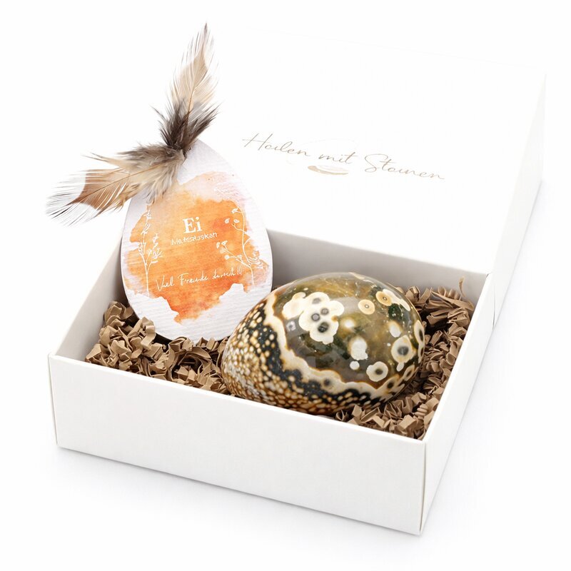 Da es sich um ein Naturprodukt handelt, können Farbe, Muster und Struktur deutlich variieren. Besonders beim Ozeanachat entstehen sehr unterschiedliche Zeichnungen und Farbspiele. Wenn Du ein bestimmtes Stück auswählen möchtest, kontaktiere uns gerne, wir senden Dir auf Wunsch Bilder der aktuell verfügbaren Eier.