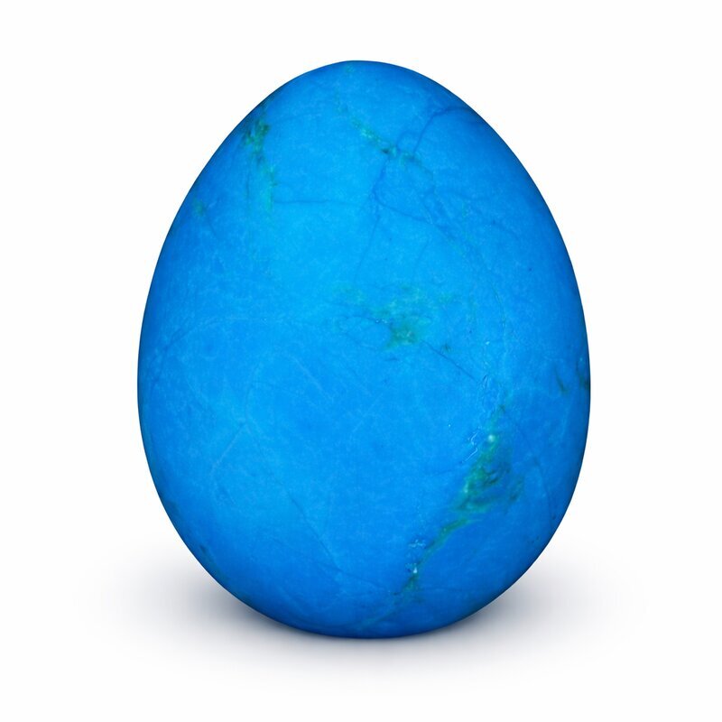 Dieses Yoni-Ei aus Türkenit zeigt die typische hellblaue Zeichnung mit feinen dunklen Strukturen. Die lebendige Maserung macht jedes Ei zu einem individuellen Naturstück.